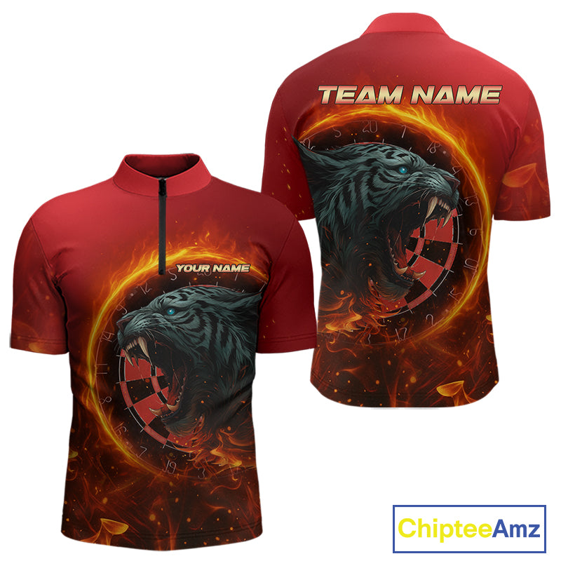 Panther Flaming Dartboard Custom Darts Quarter-Zip Shirt For Men - Darts Team Jersey NYN0727