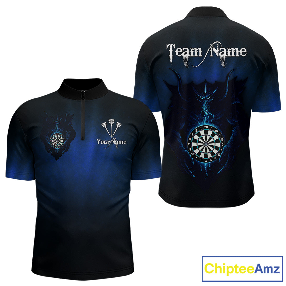 Lightning Dartboard Men's Darts 1/4 Zip Shirt Custom Name For Players - Darts Jersey NYN0734