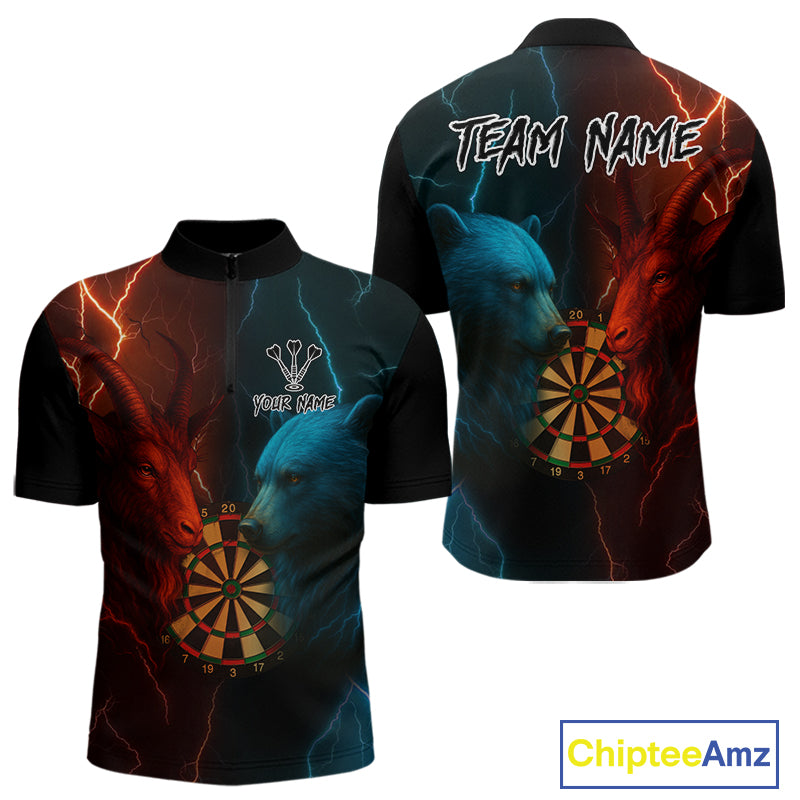 Goat & Bear Dartboard Men's Darts Quarter-Zip Shirt - Custom Name For Darts Jersey NYN0758