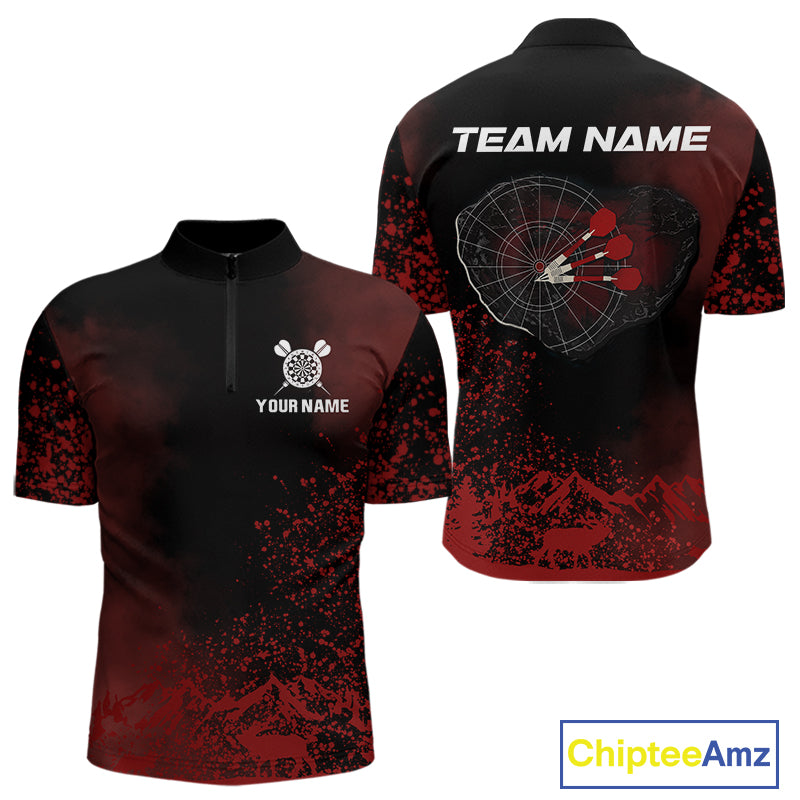 Red Arrows & Dartboard Men's Darts Quarter-Zip Shirt - Custom Name For Darts Jersey NYN0759