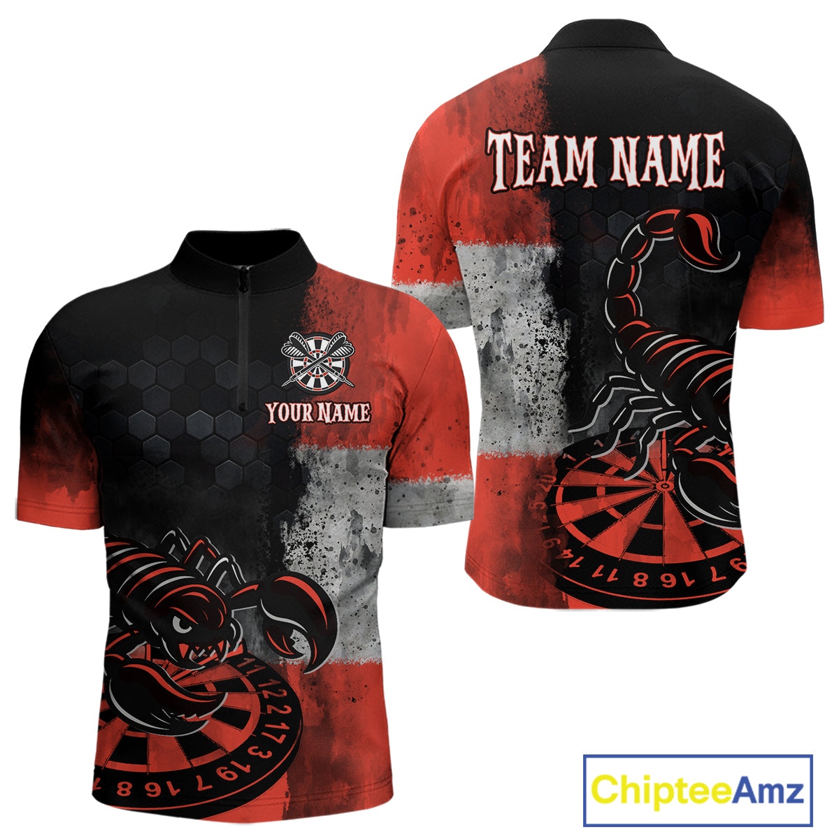 Custom Men's Darts 1/4-Zip Jersey Scorpion Red & Dartboard 3D Design For Darts Team NYN0766