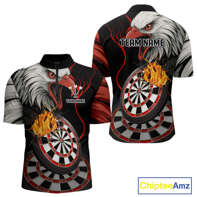 Eagle & Red Crack Darts Custom Funny Dart 1/4-Zip Shirts For Men, Dart Team Jerseys NYN0798