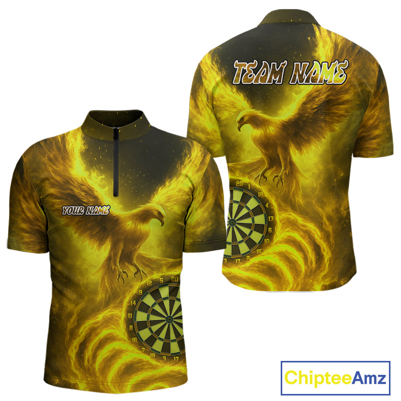 Custom Yellow Flames Phoenix Dartboard Darts Jersey Personalized Darts 1/4-Zip Shirt For Men NYN0970