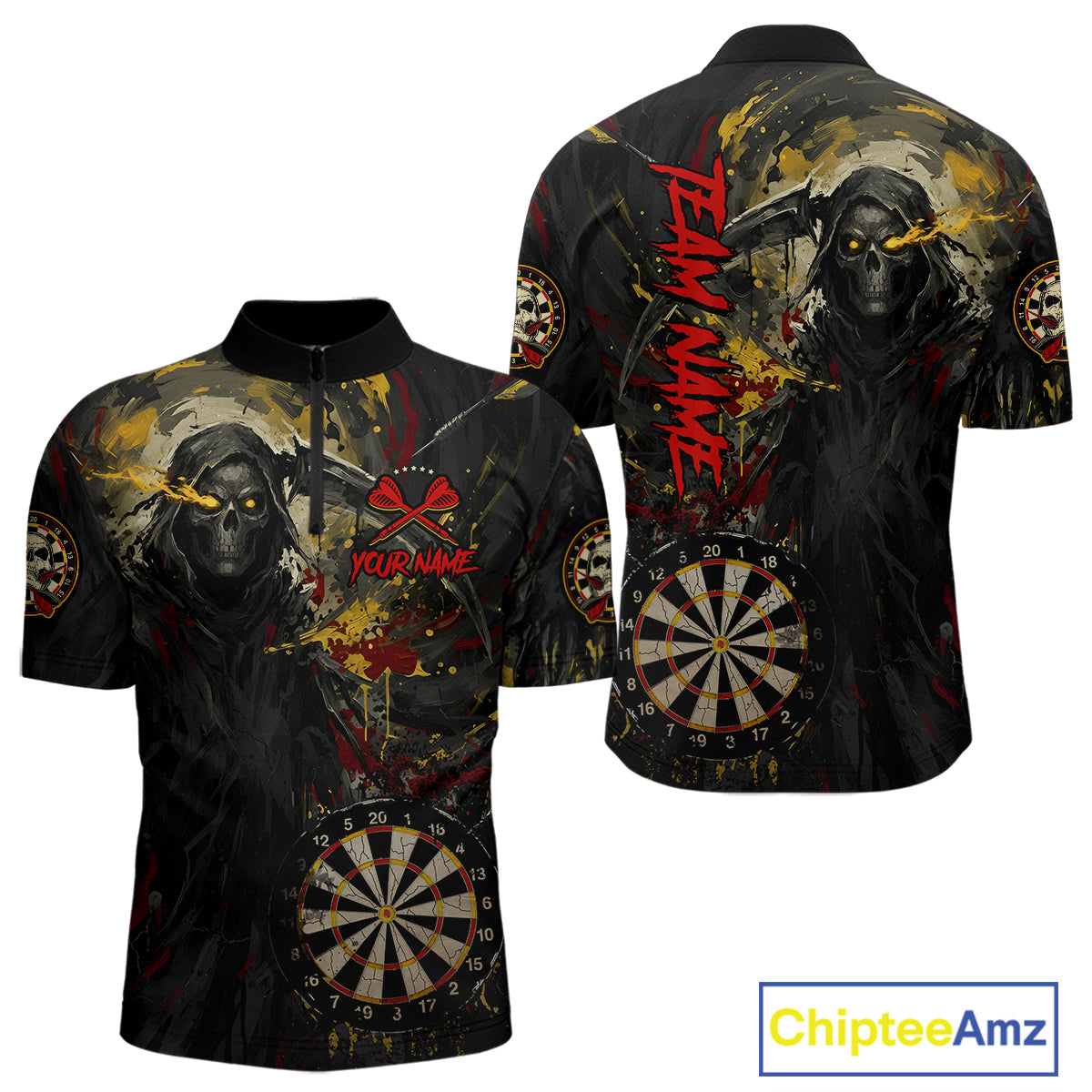 Custom Red Yellow Splatter Grim Reaper Men Darts Polo Shirt Cracked Dart Jerseys NYN1980
