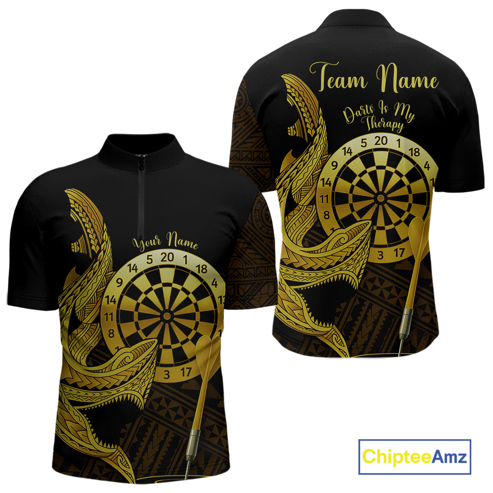 Personalized Gold Tribal Shark Custom Darts Quarter-Zip Shirts For Men Tribal Dart League Jerseys NYN2183