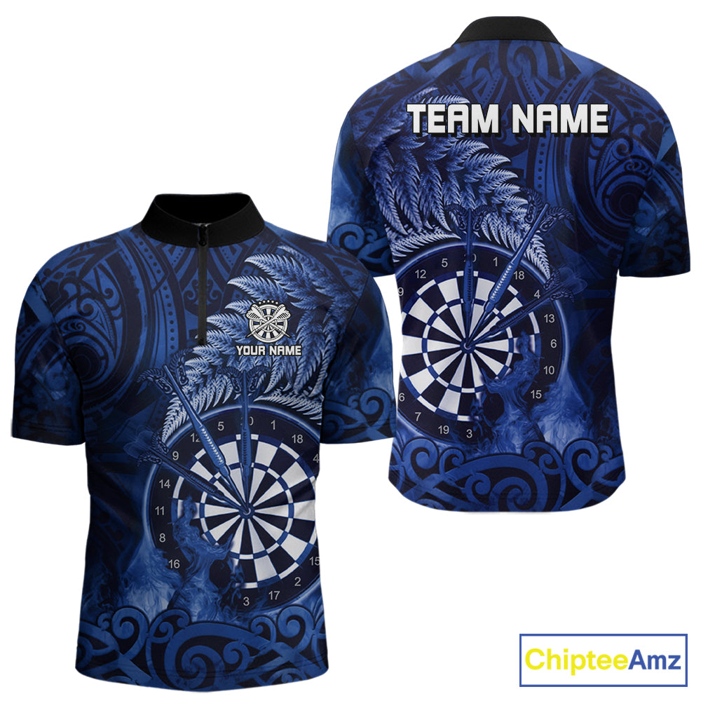 Personalized Fern Leaves Blue Fire Tribal Dart Quarter-Zip Shirts For Men Dart Team Jerseys NYN2193