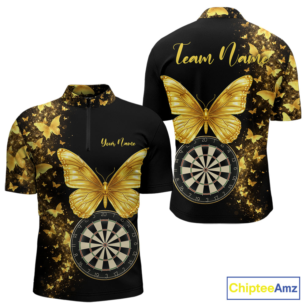 Gold Butterfly 3D Dartboard Custom Men Darts Quarter-Zip League Shirts Dart Team Jerseys NYN2262
