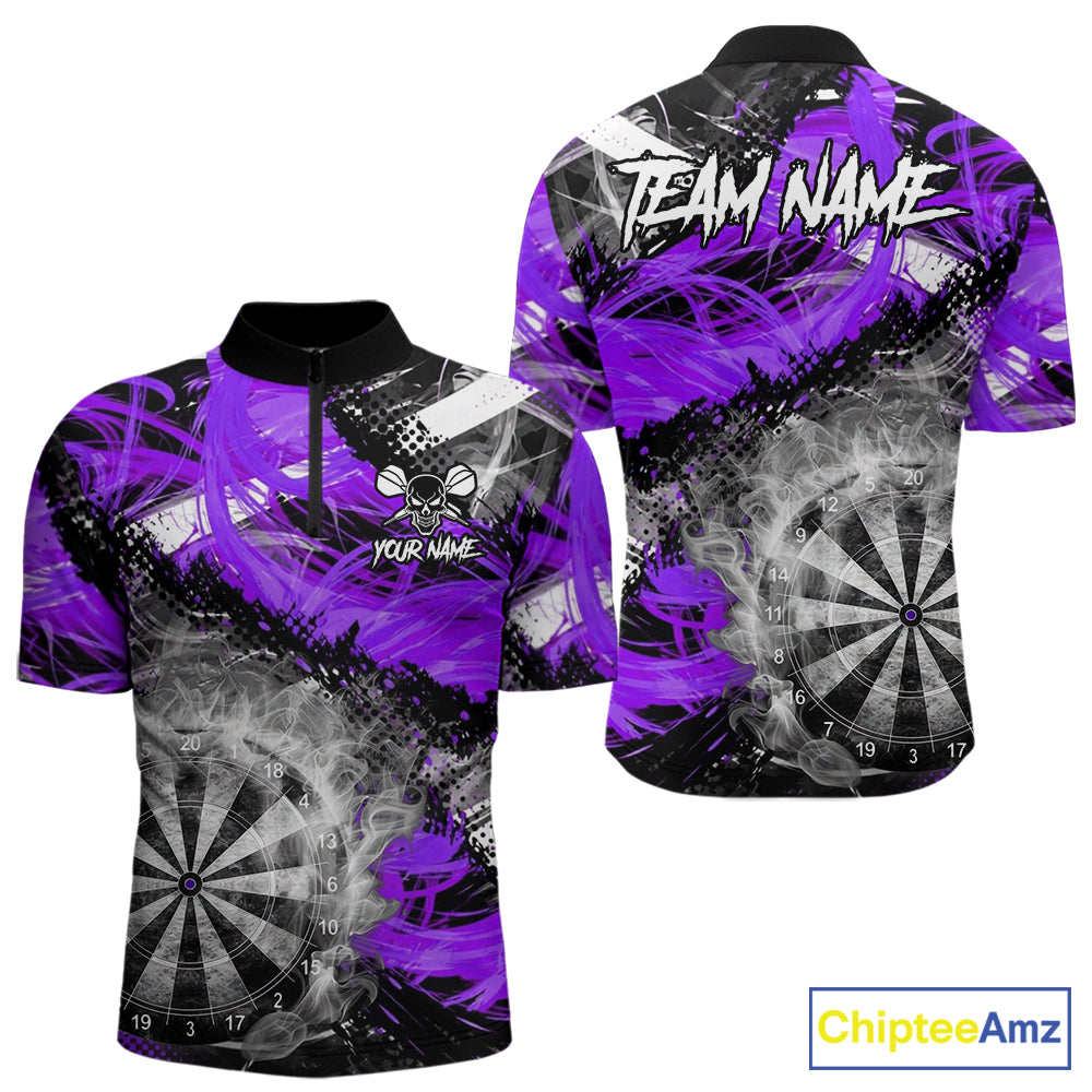 Purple & Grey Smokes Dartboard Custom Men Darts Quarter-Zip Shirts Grunge Dart League Jerseys NYN2278