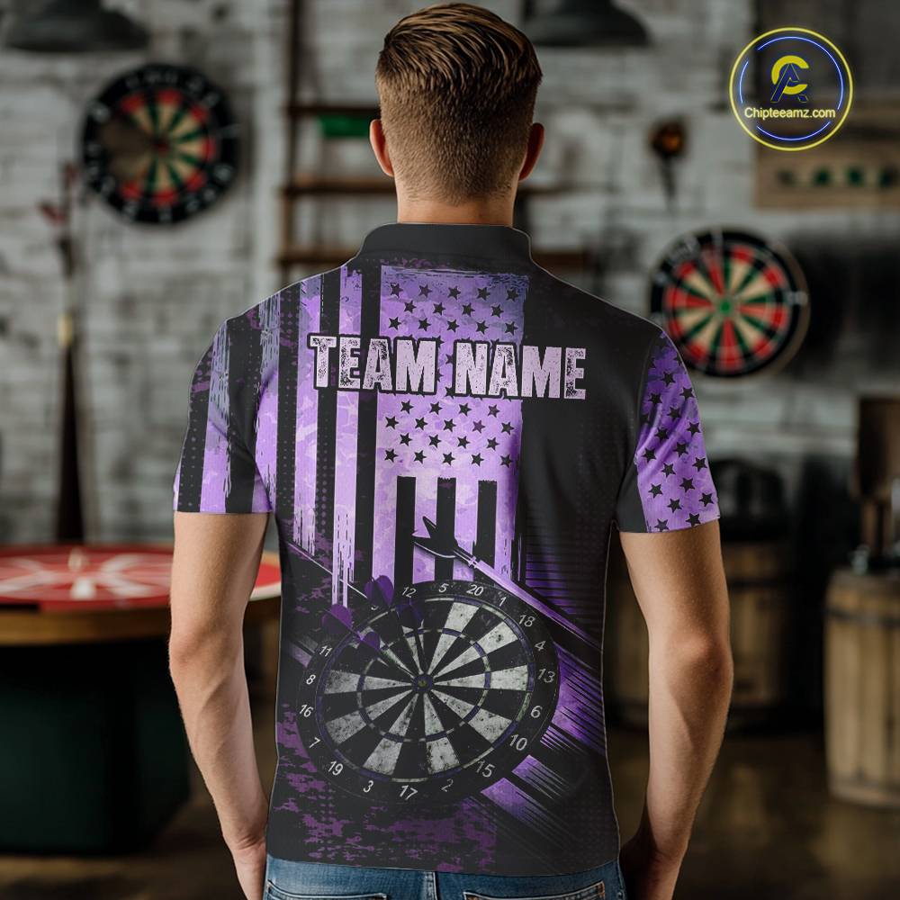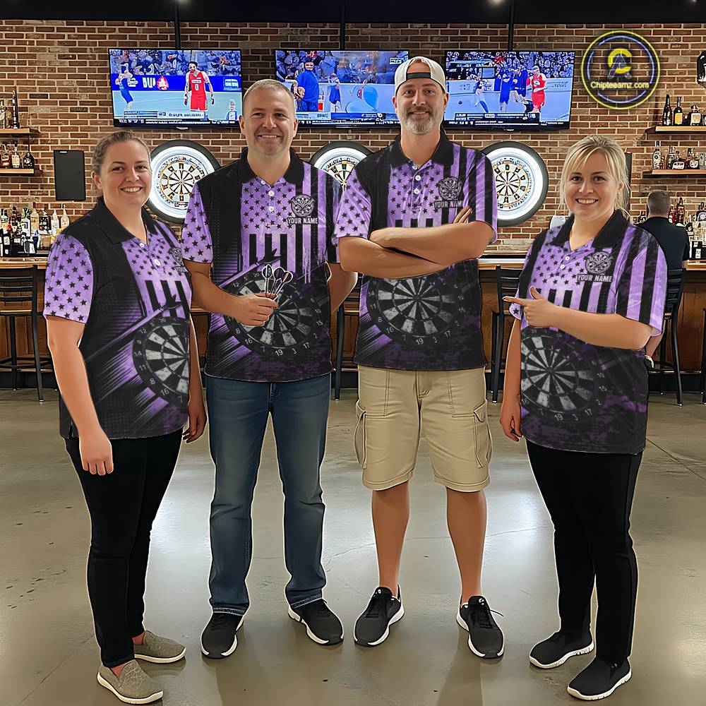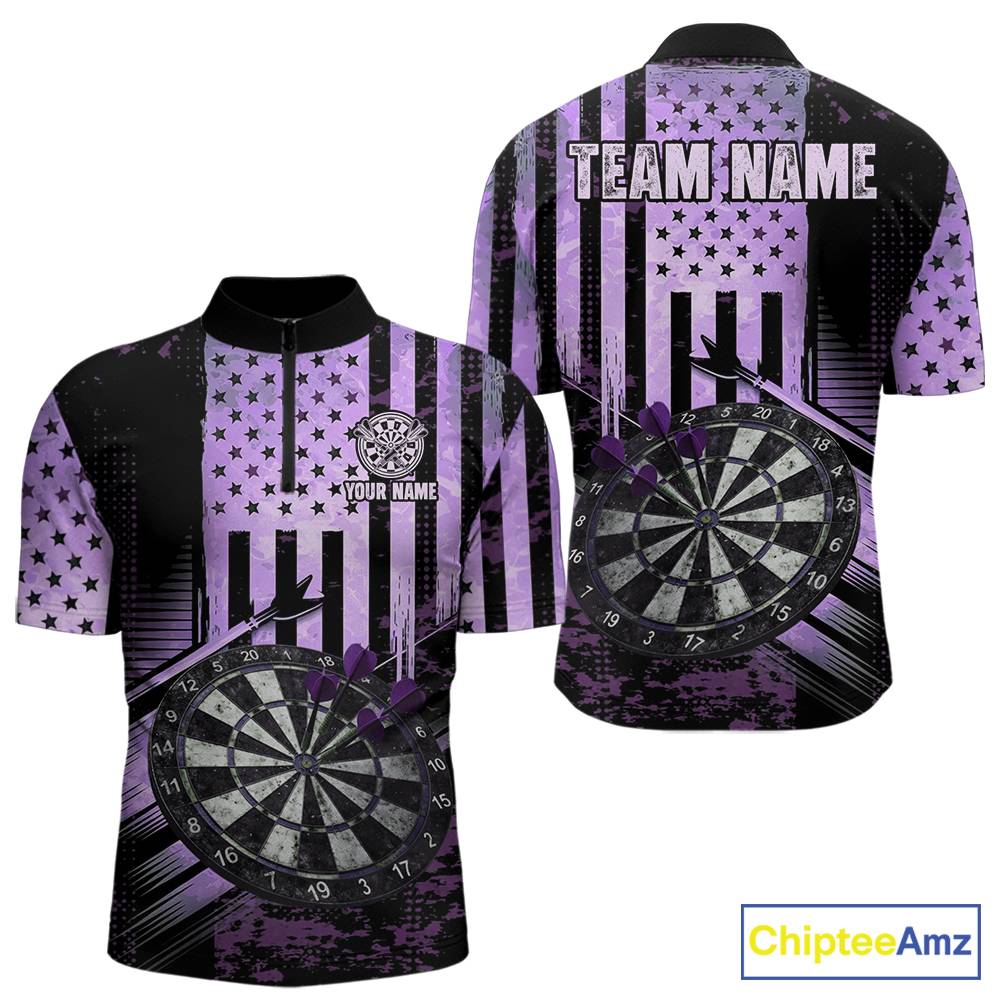 Purple US Flag Grunge Dartboard & Arrow Men Darts 1/4-Zip Shirts Custom Dart Team Jerseys NYN2444