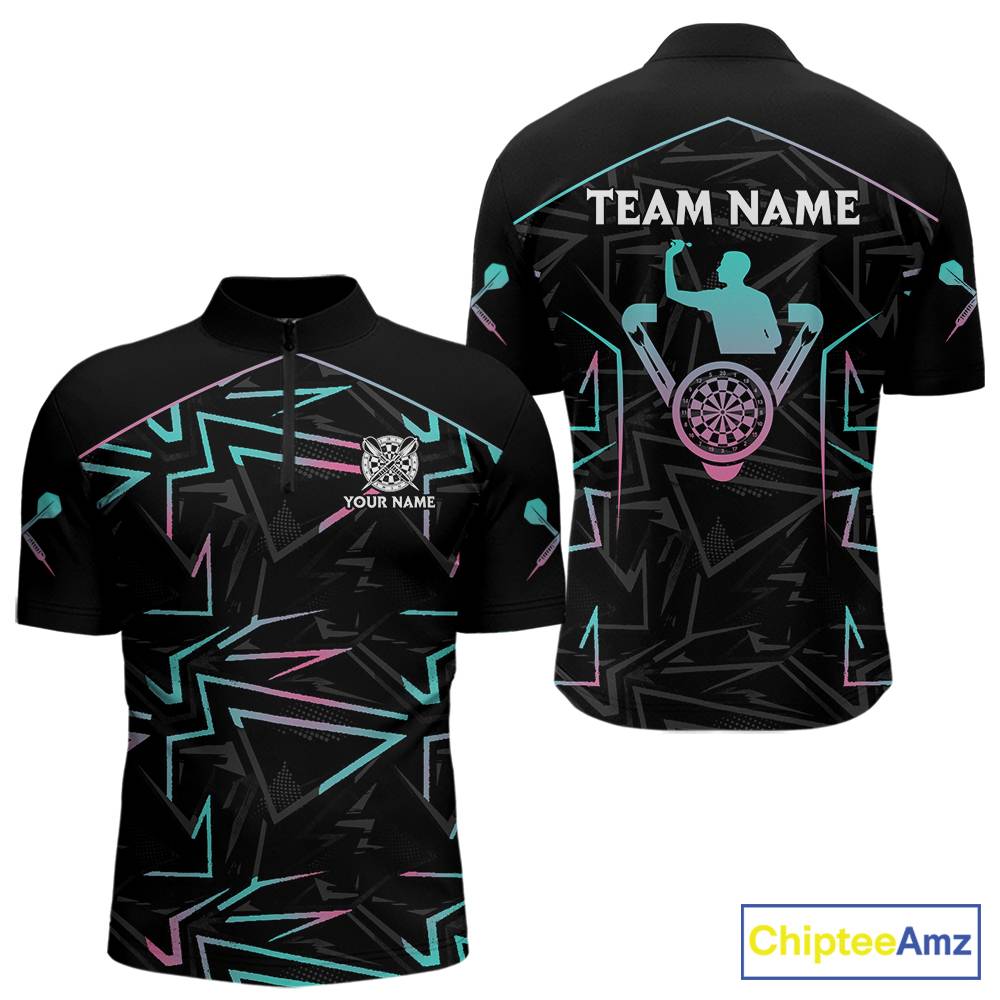 Blue And Pink Lines Human Plays Darts 1/4-Zip Shirts For Men Personalized Dart Team Jerseys NYN2448