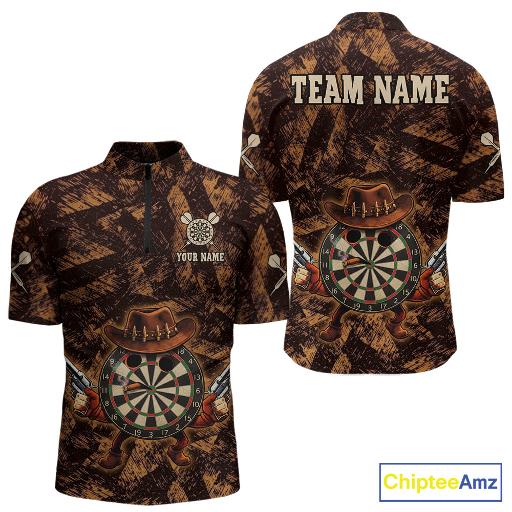 Funny Dartboard Cowhand Men Darts Quarter-Zip Shirt Personalized Brown Grunge Dart Team Jerseys NYN2510