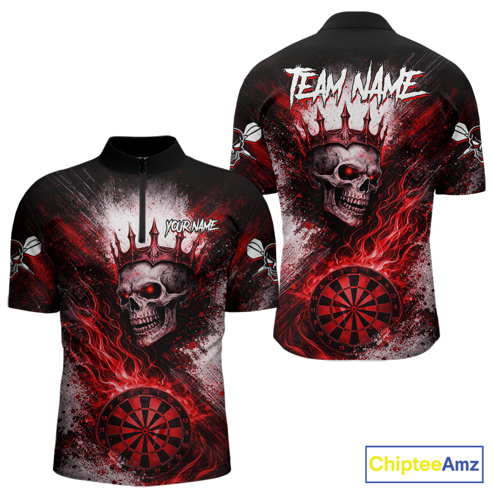 Red Crown Skull Fire Flame Dartboard Men Darts Quarter-zip Shirt Custom Grunge Dart Team Jerseys NYN2514