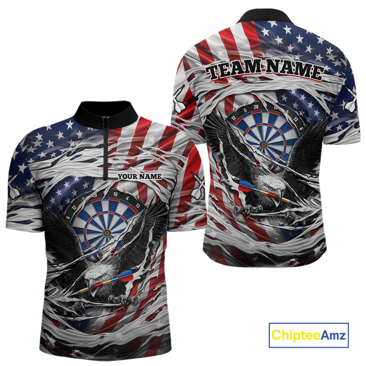 Eagle Plays Dart Arrow Freedom Patriotic Darts Quarter-zip Shirt Personalized US Flag Men Dart Jerseys NYN2519
