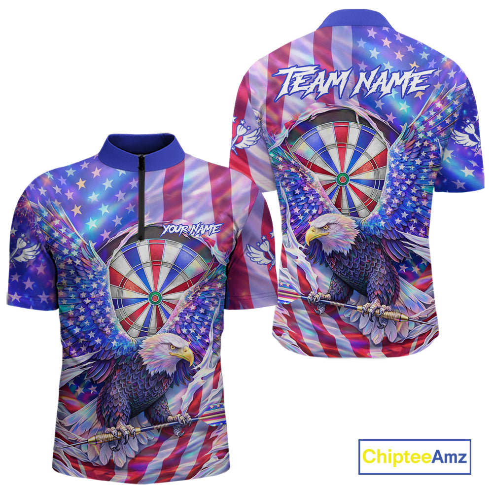 Funny Eagle Freedom Patriotic Darts Quarter-zip Shirt For Men Custom Holographic US Flag Dart Jerseys NYN2520