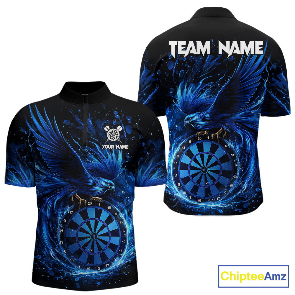 Blue Splatter Funny Eagle Dartboard Darts Quarter-zip Shirt For Men Custom Dart Team Jerseys NYN2521