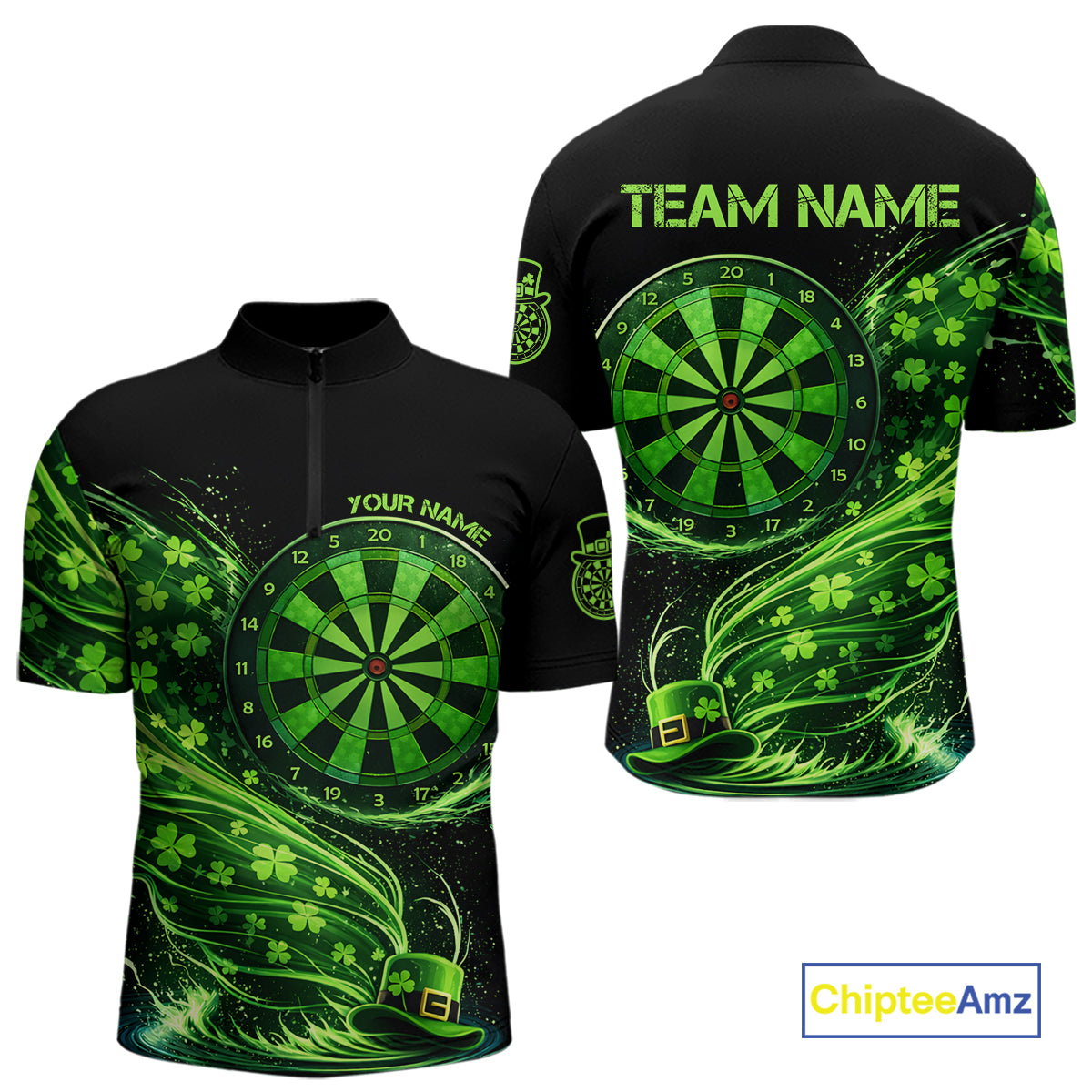 Funny Shamrock Tornado Dartboard Men Darts Quarter-Zip Shirt Custom St Patrick's Day Darts Team Jersey NYN2532