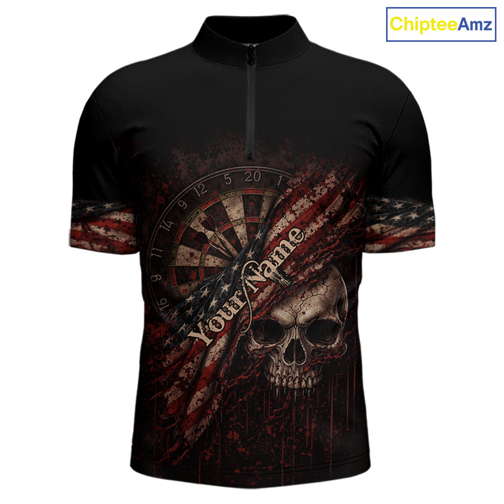 Red Grunge Retro American Flag Dartboard Men Dart 1/4-Zip Shirt Custom Skull Dart Team Jerseys NYN2542