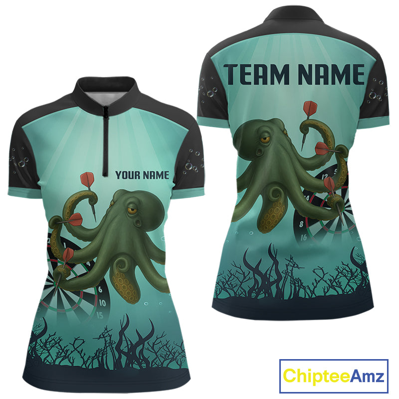 Custom Women's Darts 1/4-Zip Jersey Green Octopus Play Dart Arrows For Darts Team NYN0767