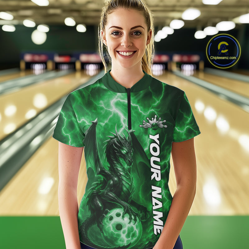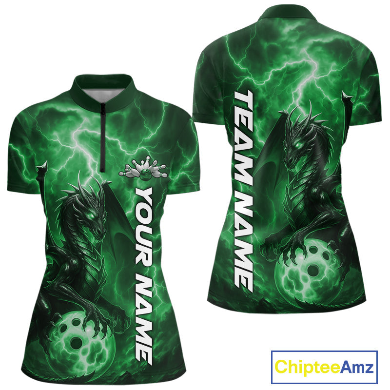 Custom Green Thunder Lightning Bowling Team Women Shirt, Dragon Bowling Jerseys IPHW10199
