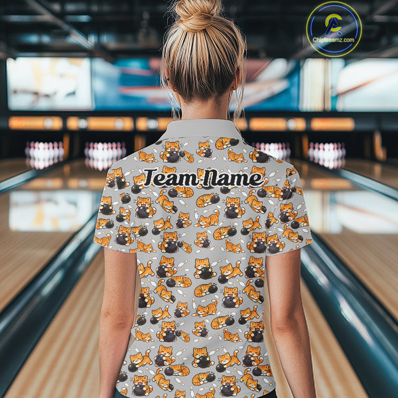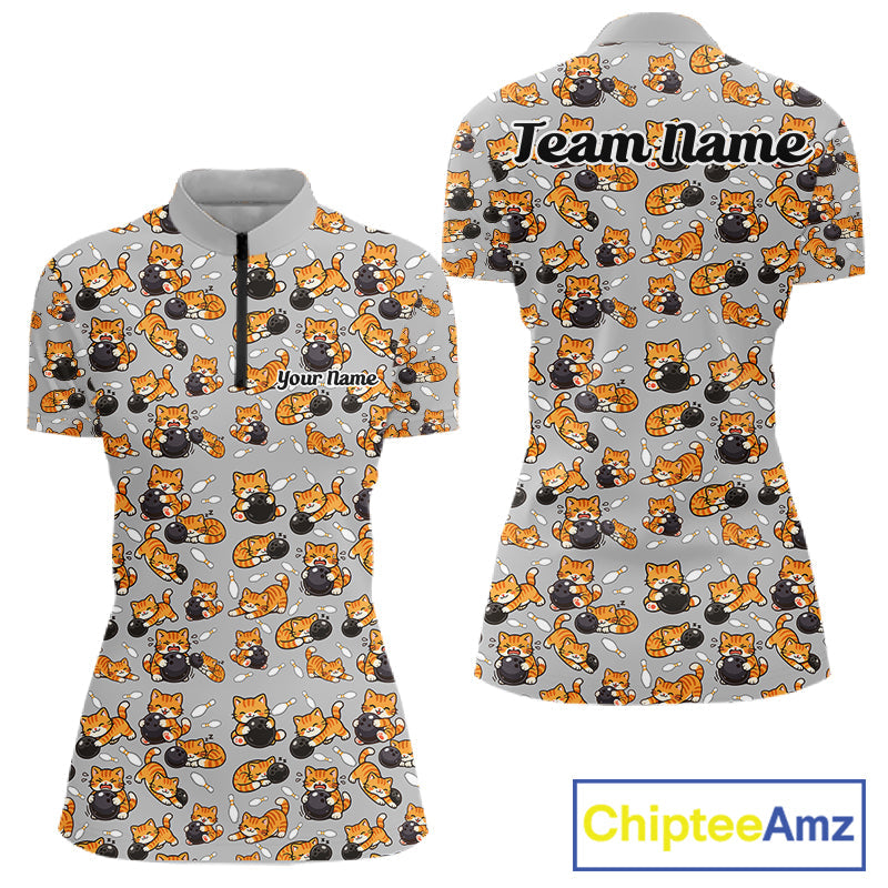 Custom Cute Ginger Tabby Cat Bowling Women Quarter-Zip Shirts, Cat Bowling Team Shirt IPHW10304