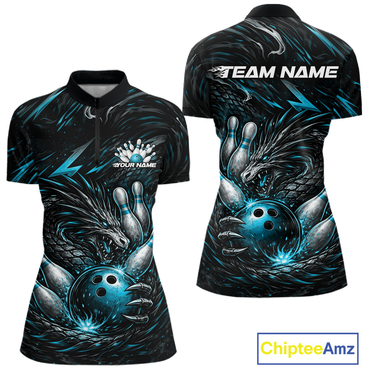 Custom Turquoise Blue Dragon Bowling Jersey, Dragon Bowling Team Women Quarter-Zip Shirt IPHW10363