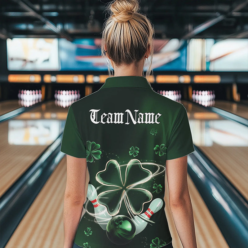 Custom Green Shamprock Saint Patricks Bowling Womens Quarter-Zip Shirt, Lucky Bowling Shirt IPHW8572