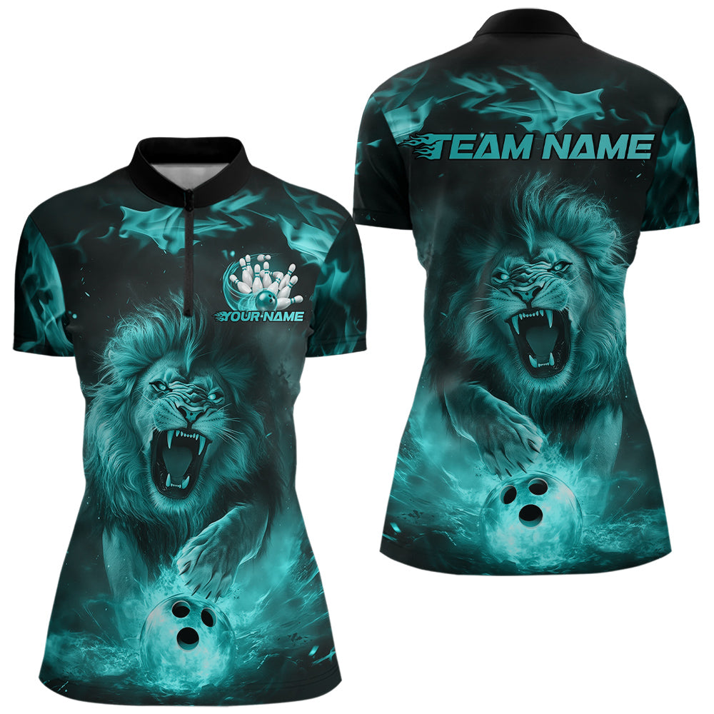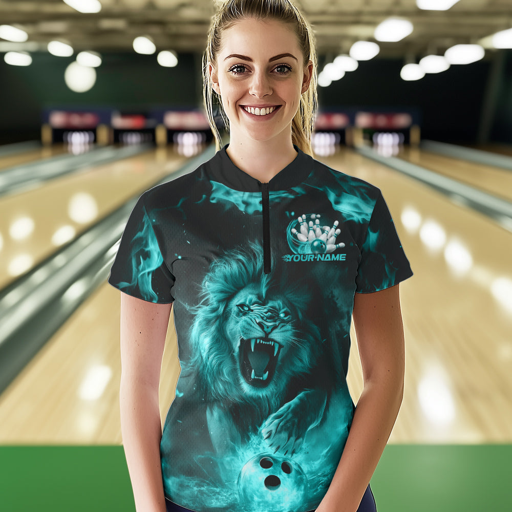 Custom Blue Flame Lion Bowling Quarter-Zip Shirts For Women, Bowling Team Uniform IPHW8982