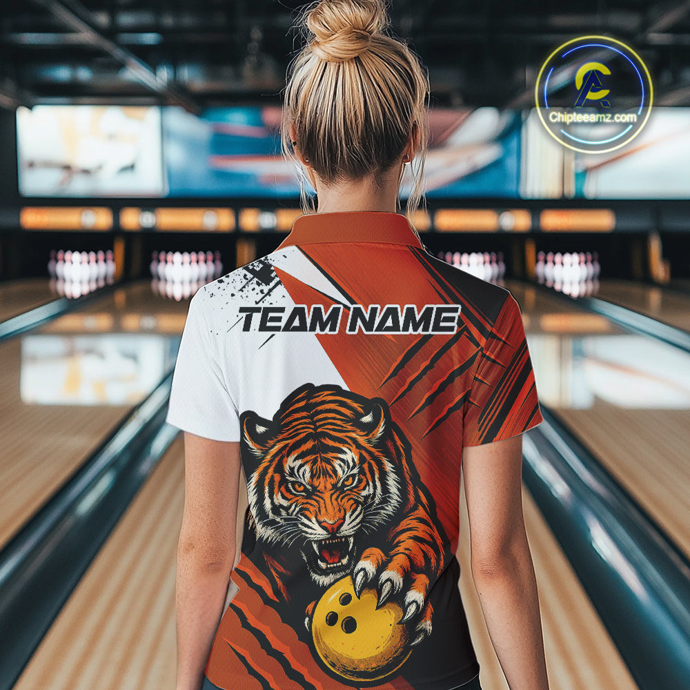 Custom Tiger Bowling Team Quarter-Zip Shirts For Women, Tiger Claw Bowling Jerseys IPHW9026