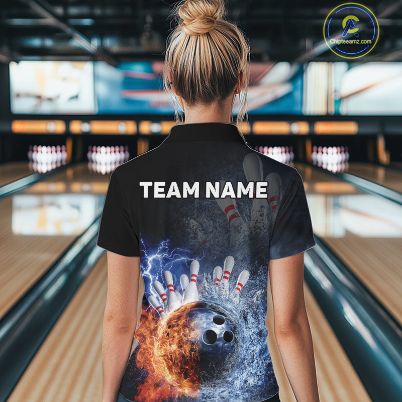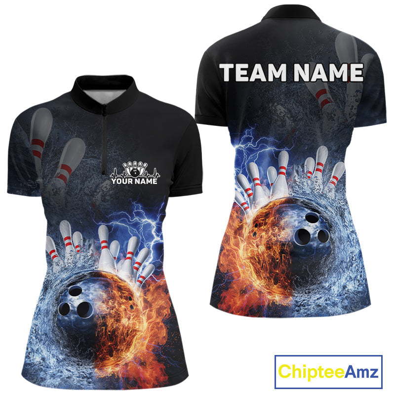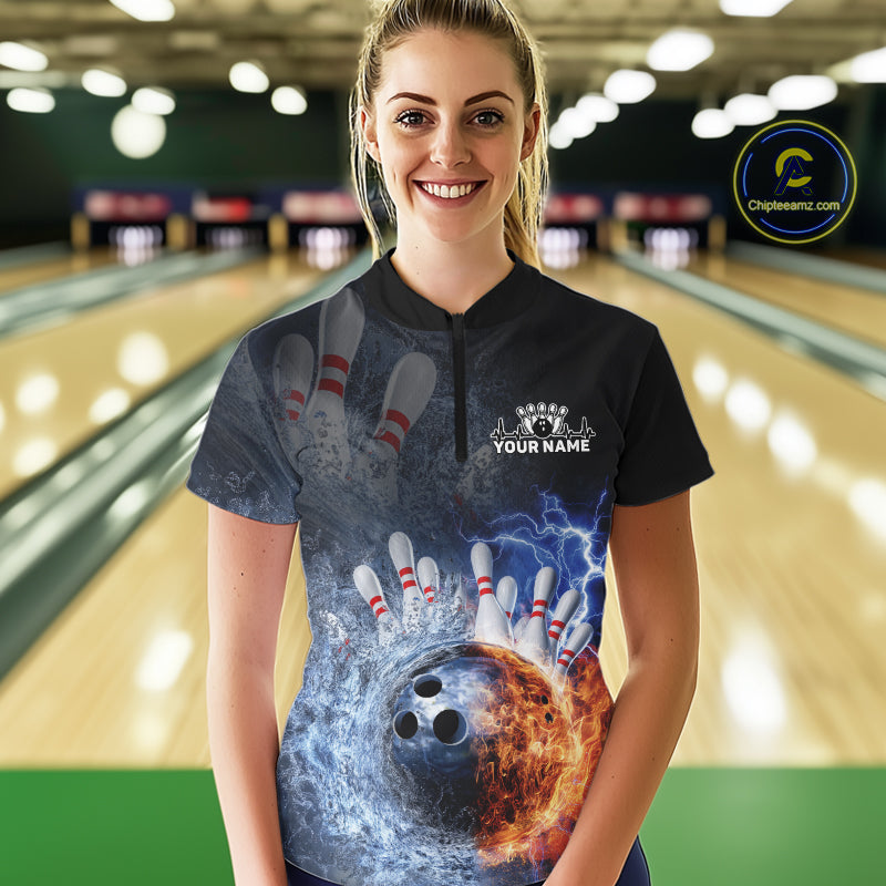 Custom Lightning, Fire And Water Splash Energy Burst Bowling Team Women Quarter-Zip Shirt IPHW9451