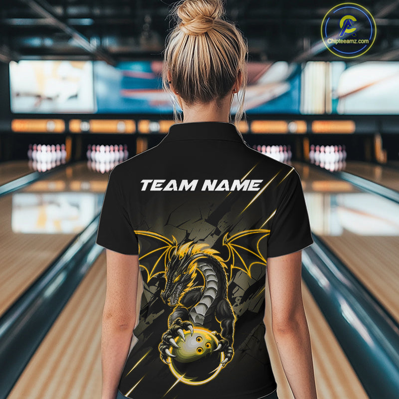 Custom Glowing Yellow Dragon Bowling Team Women Quarter-Zip Shirt, Dragon Bowling Jerseys IPHW9540