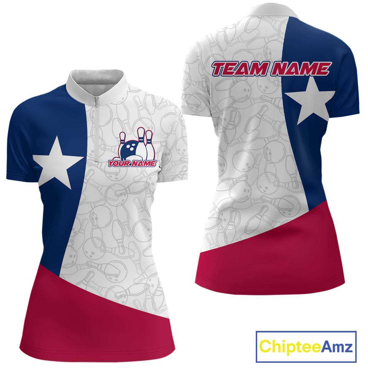 Custom Bowling Pattern Texeas Bowling Women Quarter Zip Shirt, Texas Bowling League Shirt IPHW9629