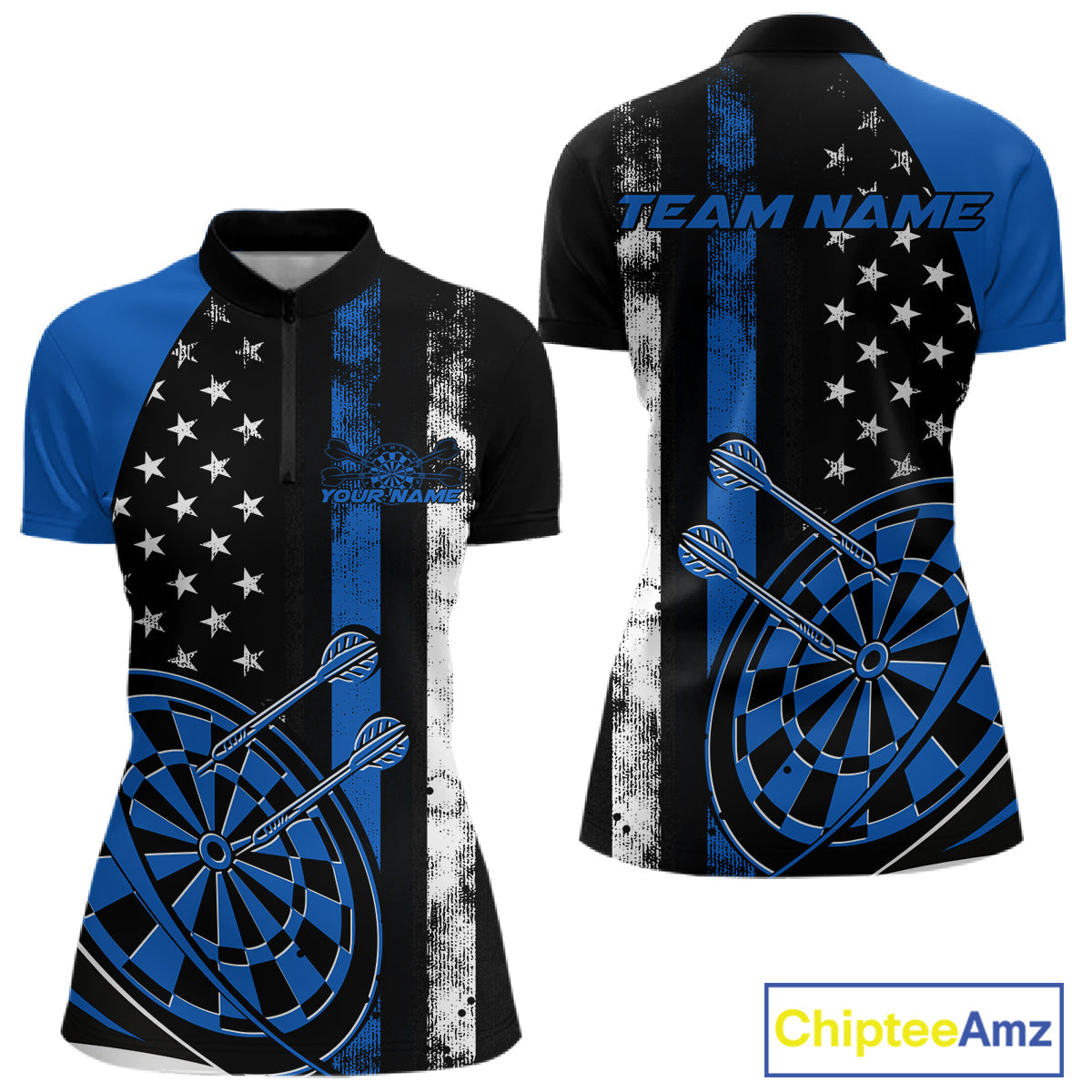 Custom Blue Thin Line US Flag Patriotic Dartboard Dart Women Quarter-Zip Team Shirts IPHW9645