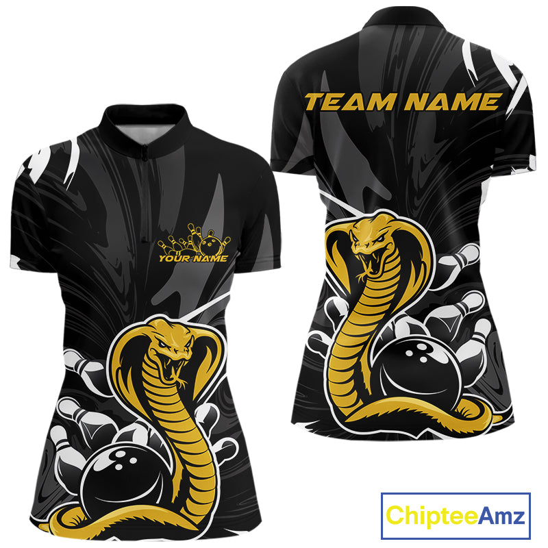 Custom Yellow Cobra Snake Bowling Team Jerseys, Bowling Quarter-Zip Shirts For Women IPHW9708