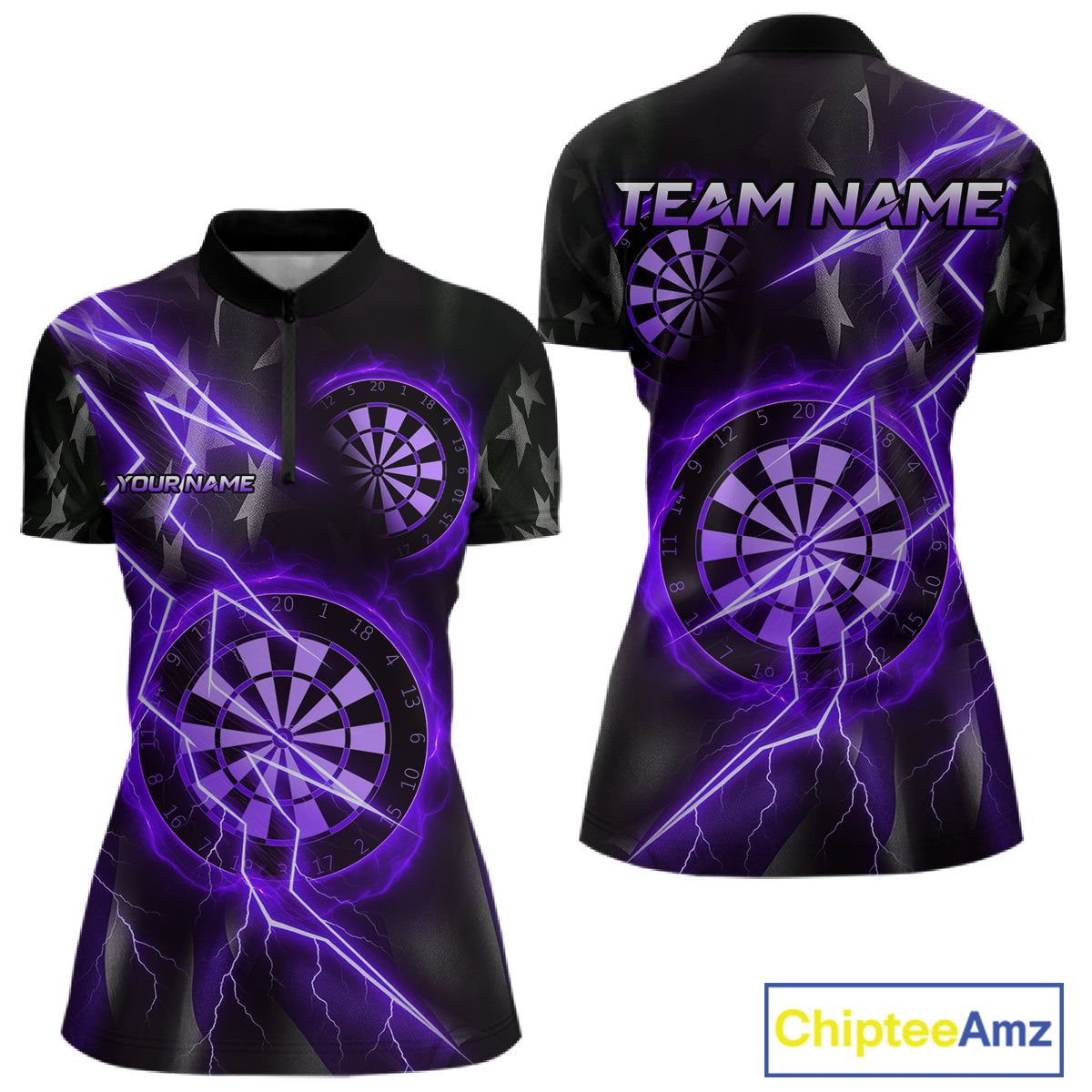 Custom Lightning Purple And Black Darts 1/4-Zip Shirt For Women Darts Tournament Jerseys NYN0951