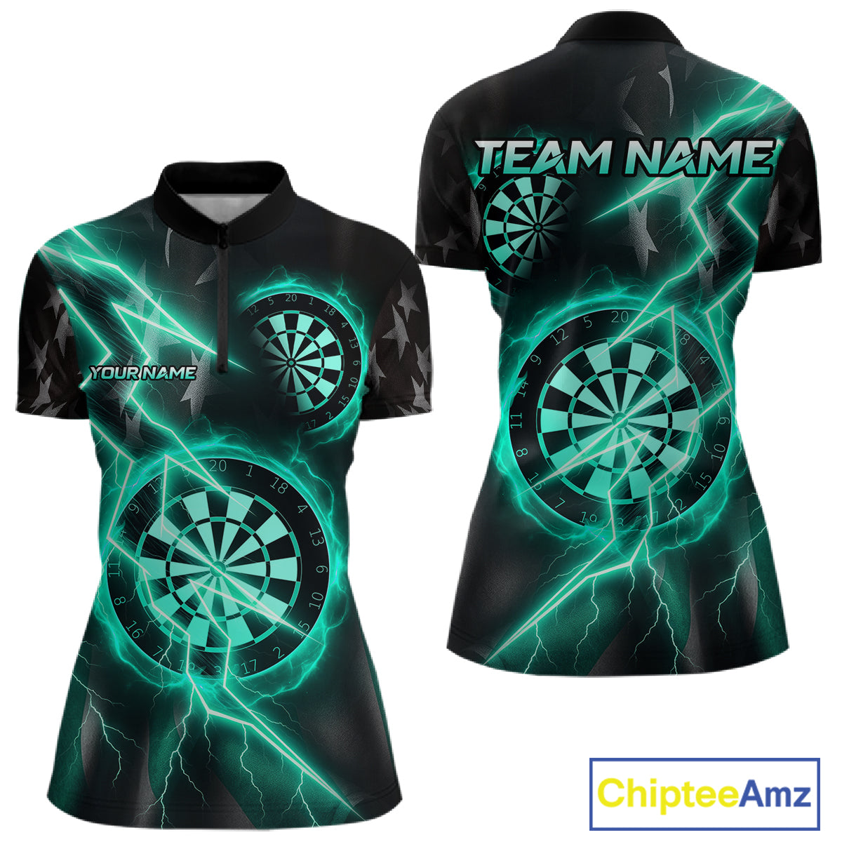 Custom Lightning Turquoise And Black Darts 1/4-Zip Shirt For Women Darts Tournament Jerseys NYN0952