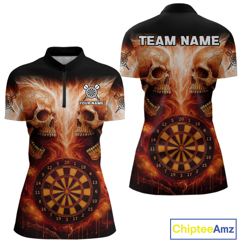 Custom Lightning Blue Skulls Dartboard 1/4-Zip Darts Shirt For Women Outfit Dart Team Jersey NYN1006