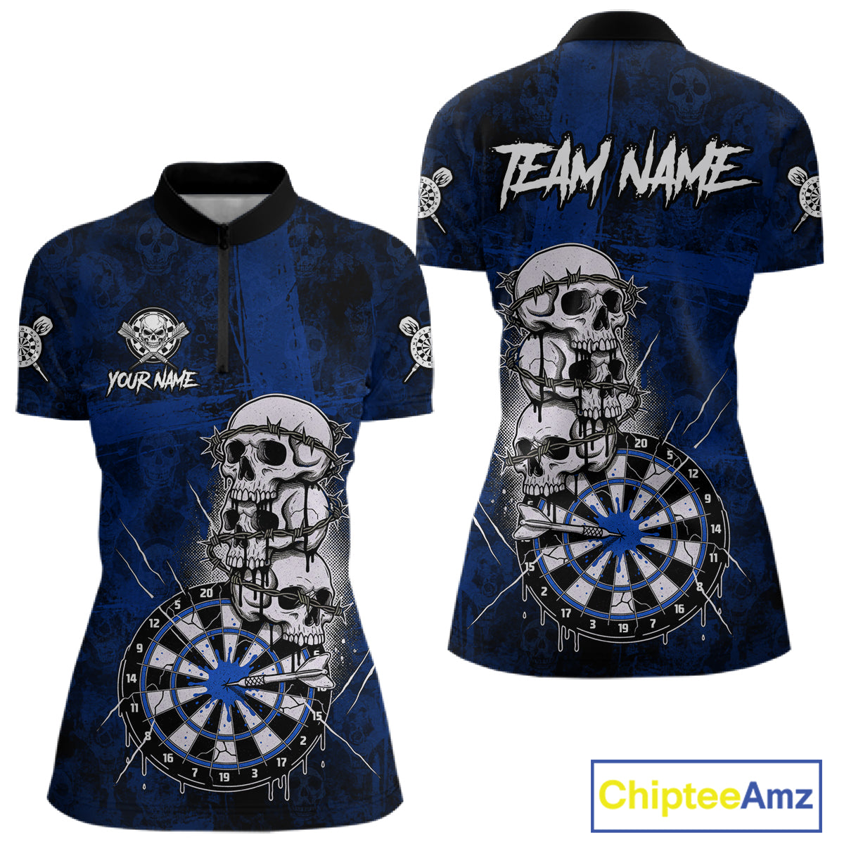 Custom Blue Grunge Barbed Wire Grey Skull Dartboard Men Darts Polo Shirt Dart Jerseys NYN1978