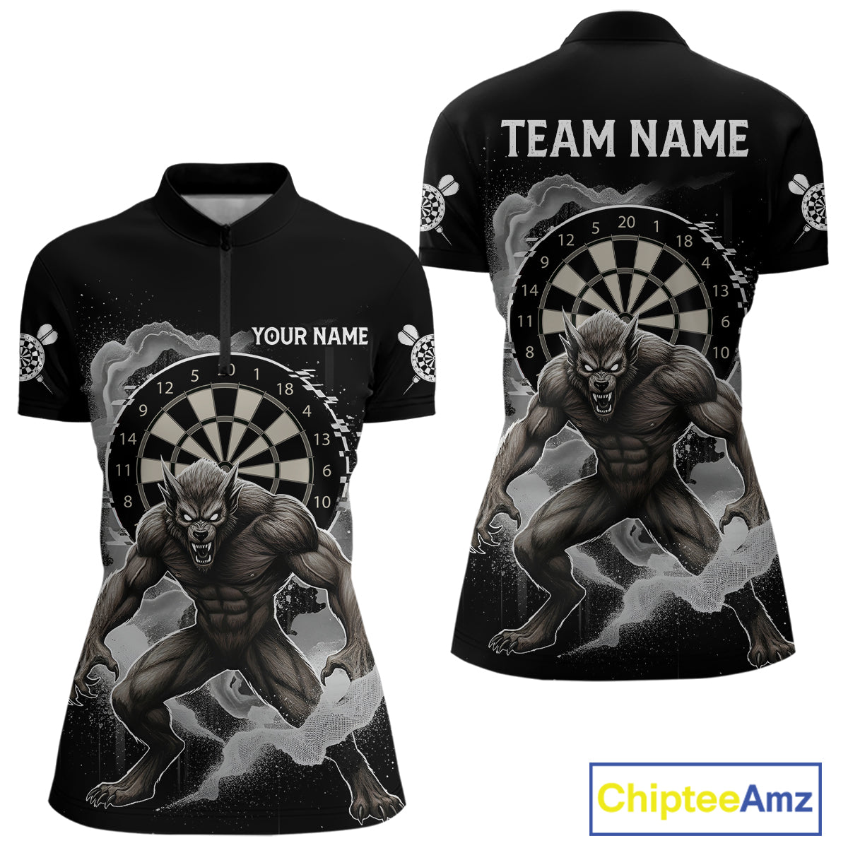 Grey Smokes Horror Wolf Grunge Dartboard Custom Darts Quarter-Zip Shirt For Women Dart Gifts NYN1997