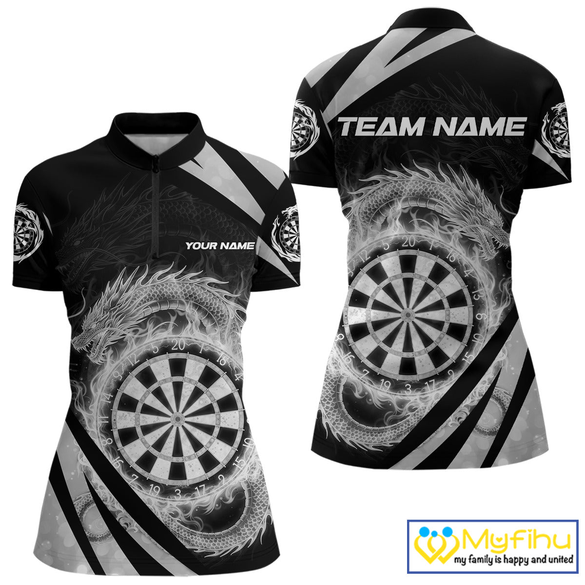 Silver Flames Dragon Dartboard Women Darts Quarter-Zip Shirt Custom Dragon Team Dart League Shirt NYN2069