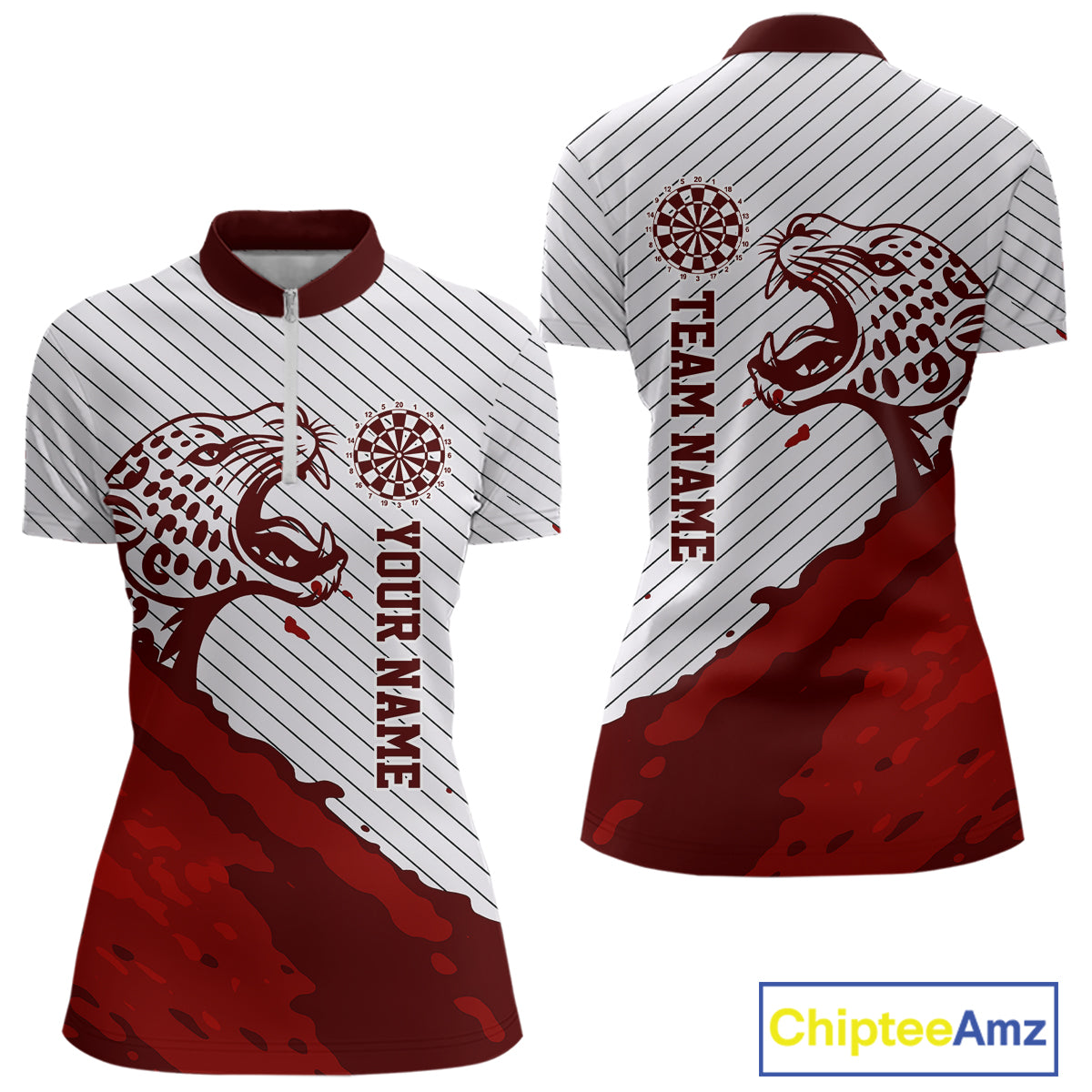 Personalized White And Red Striped Leopard Darts Quarter-Zip Shirts For Women Dart Team Jerseys NYN2197