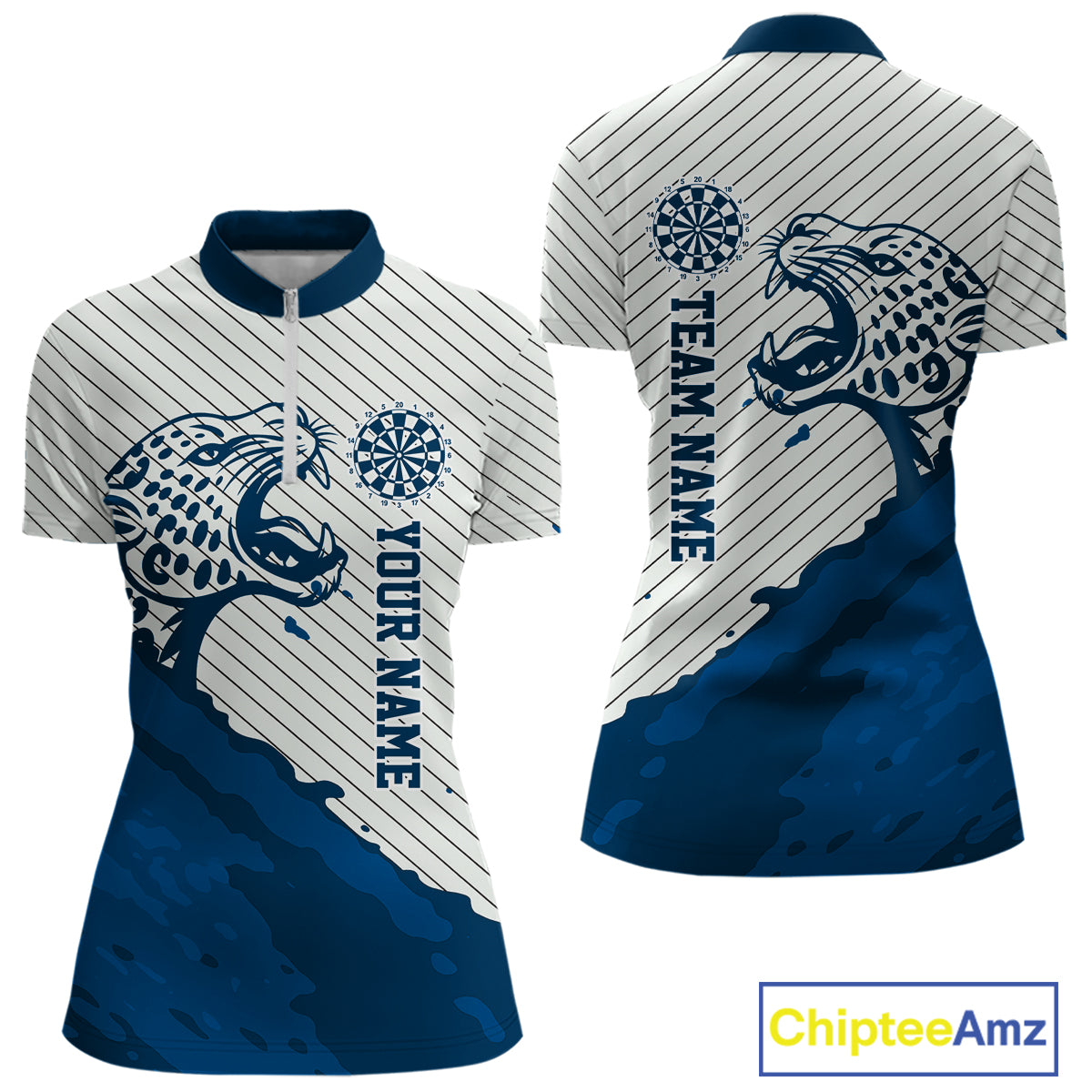 Personalized White And Blue Striped Leopard Darts Quarter-Zip Shirts For Women Dart Team Jerseys NYN2198