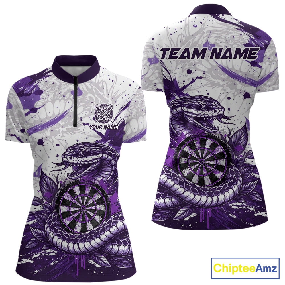 Custom White And Purple Splatter Cobra Dartboard Women Darts Quarter-Zip Shirts Grunge Dart Jerseys NYN2270