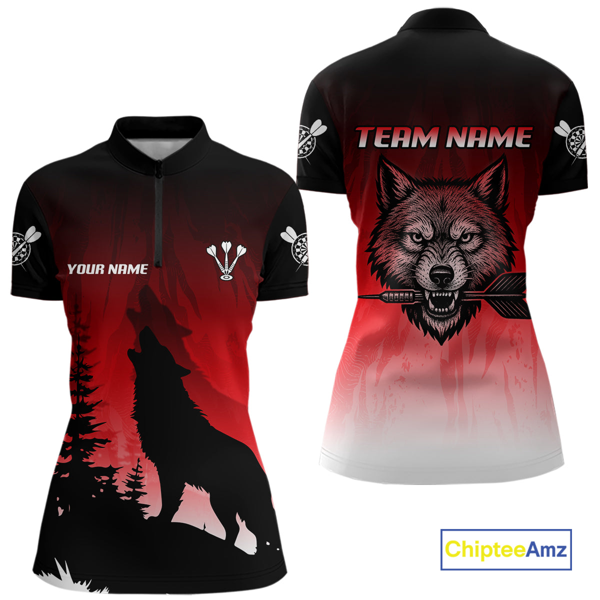 Personalized Wolf-Head Dart Arrows Red Dart Quarter-Zip Shirt For Women Dart Team Jerseys NYN2284