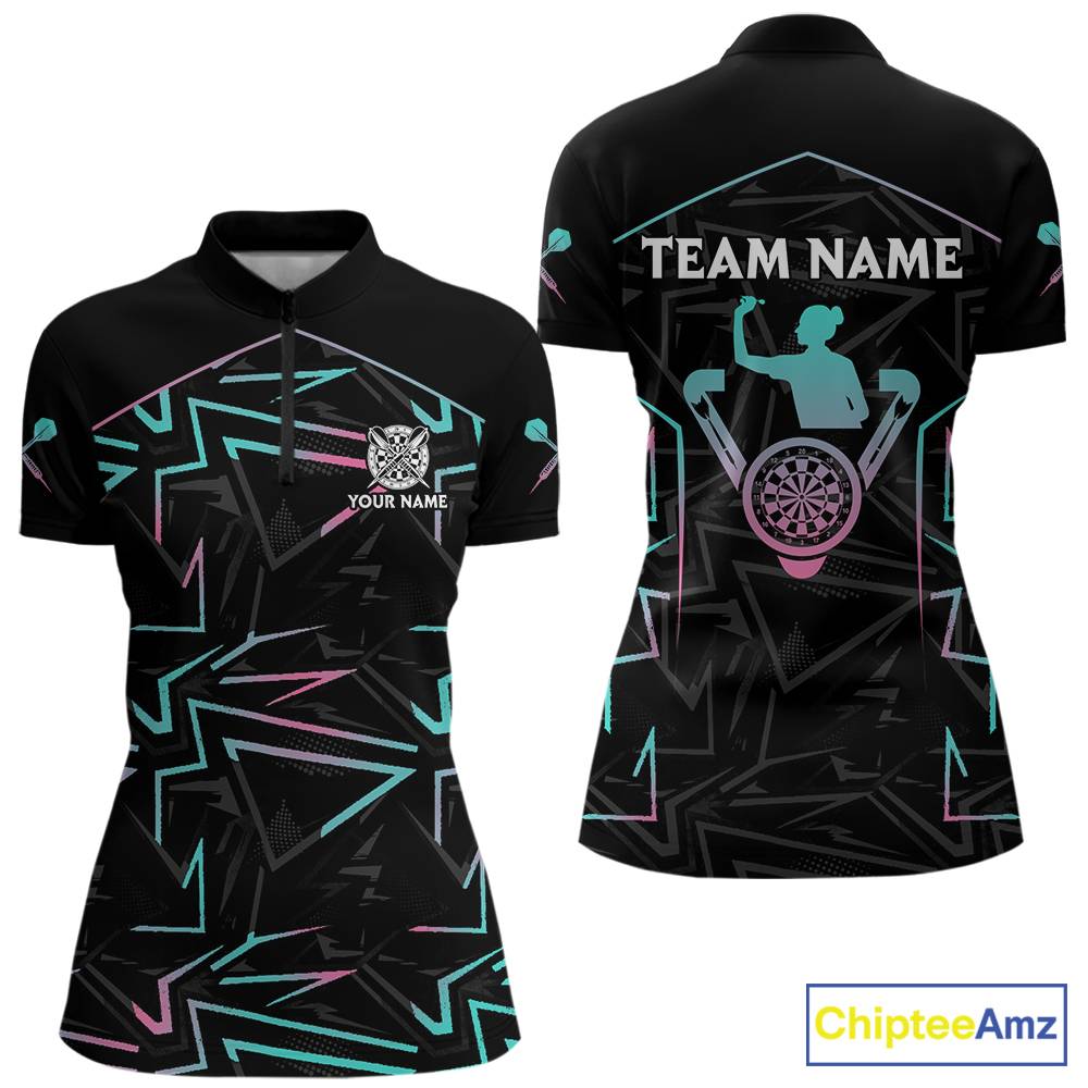 Blue And Pink Lines Human Plays Darts 1/4-Zip Shirts For Women Personalized Dart Team Jerseys NYN2448