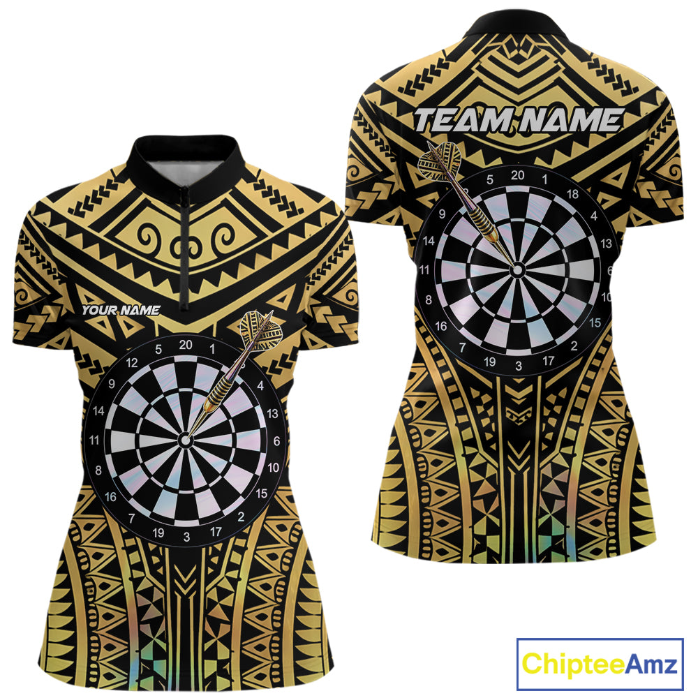 Gold Tribal Holographic Dartboard & Arrow Women Darts Quarter-zip Shirt Personalized Dart Team Jerseys NYN2515