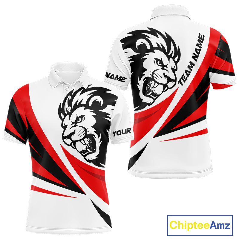 Mens Golf Polo Shirts Custom Golf Ball Red And Black Pattern Lion Golf Shirts For Men Golf Gifts NHN0064