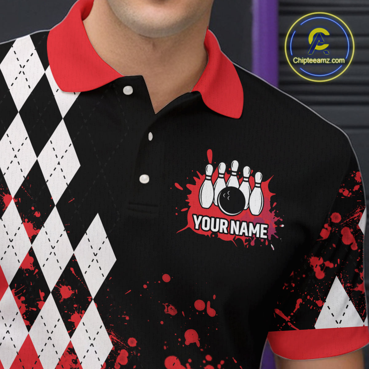 Red argyle pattern Retro Bowling Shirts For Men Custom My drinking team has a bowling problem NQS9825