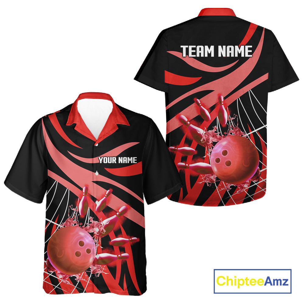 Red flame Bowling Hawaiian Shirts Custom Team bowling outfit button up shirt NQS11393