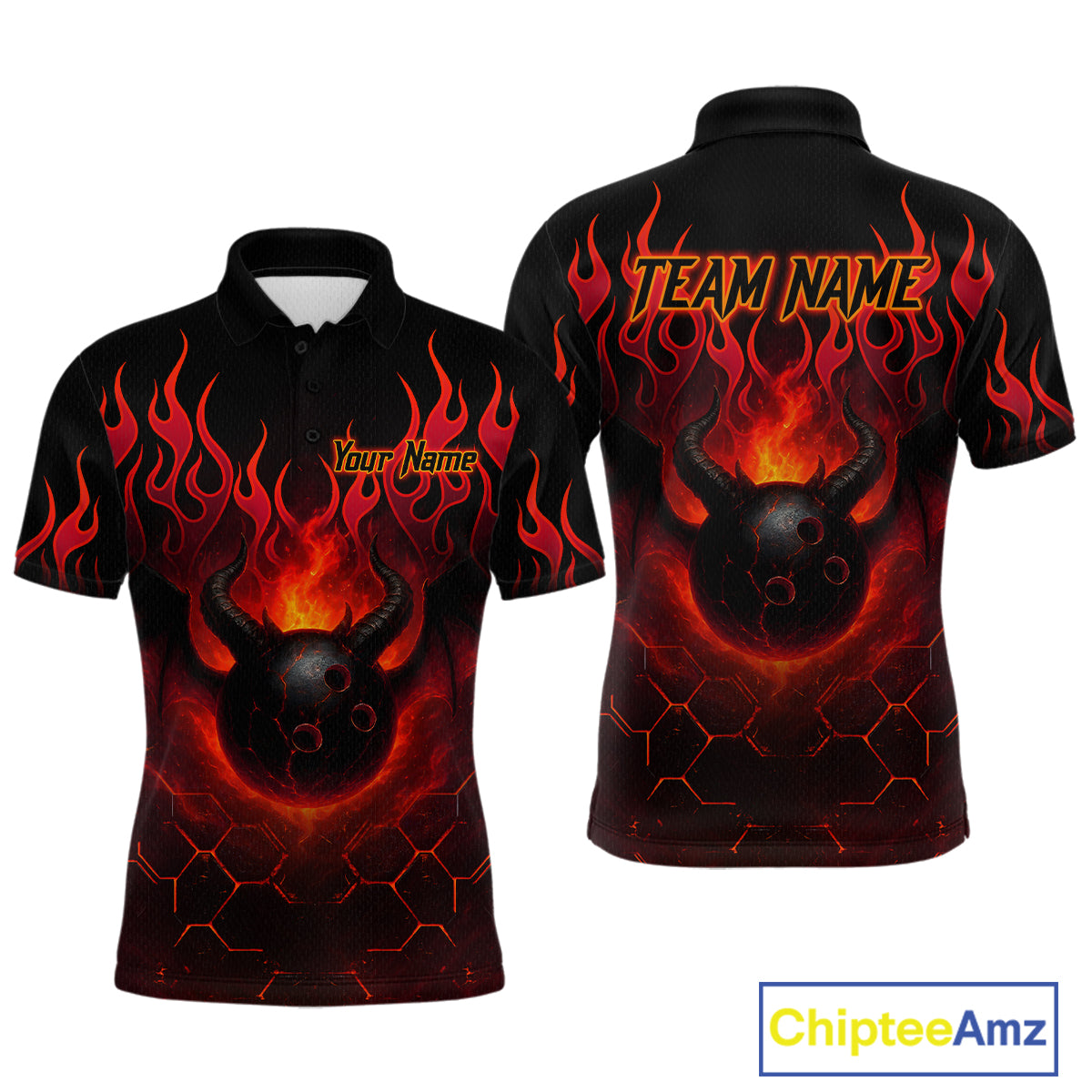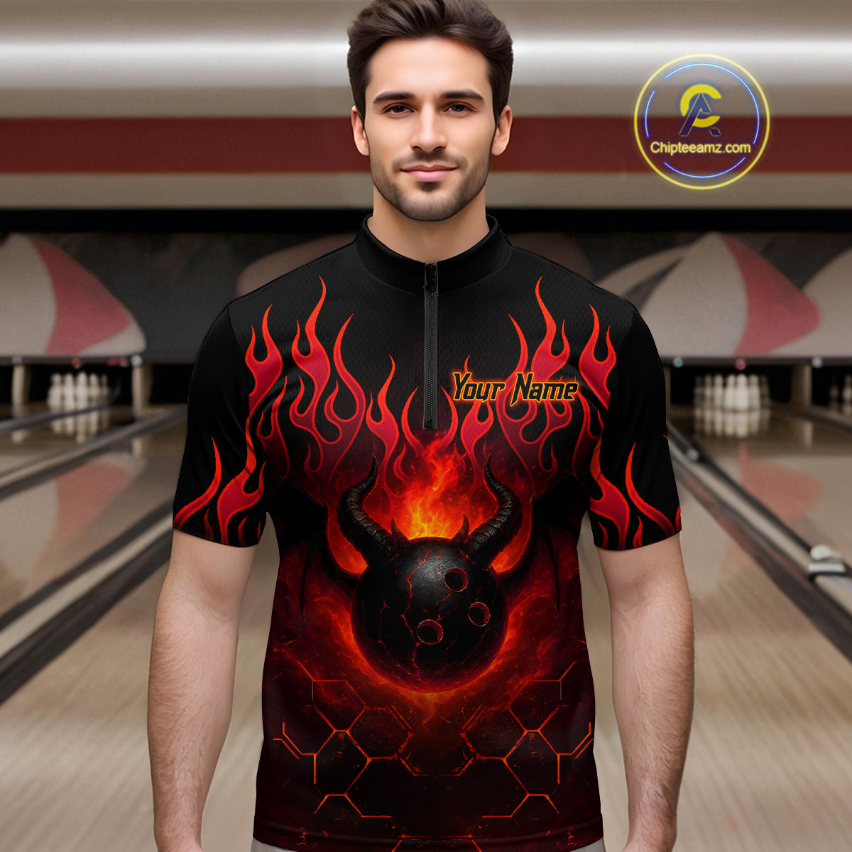Red Flame Demon Bowling Ball Shirt for Men Custom Bowling Team Jersey Bowling Outfit Polo & Quarter-Zip QZT758