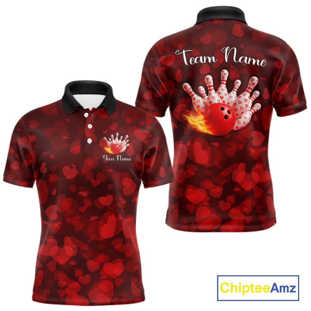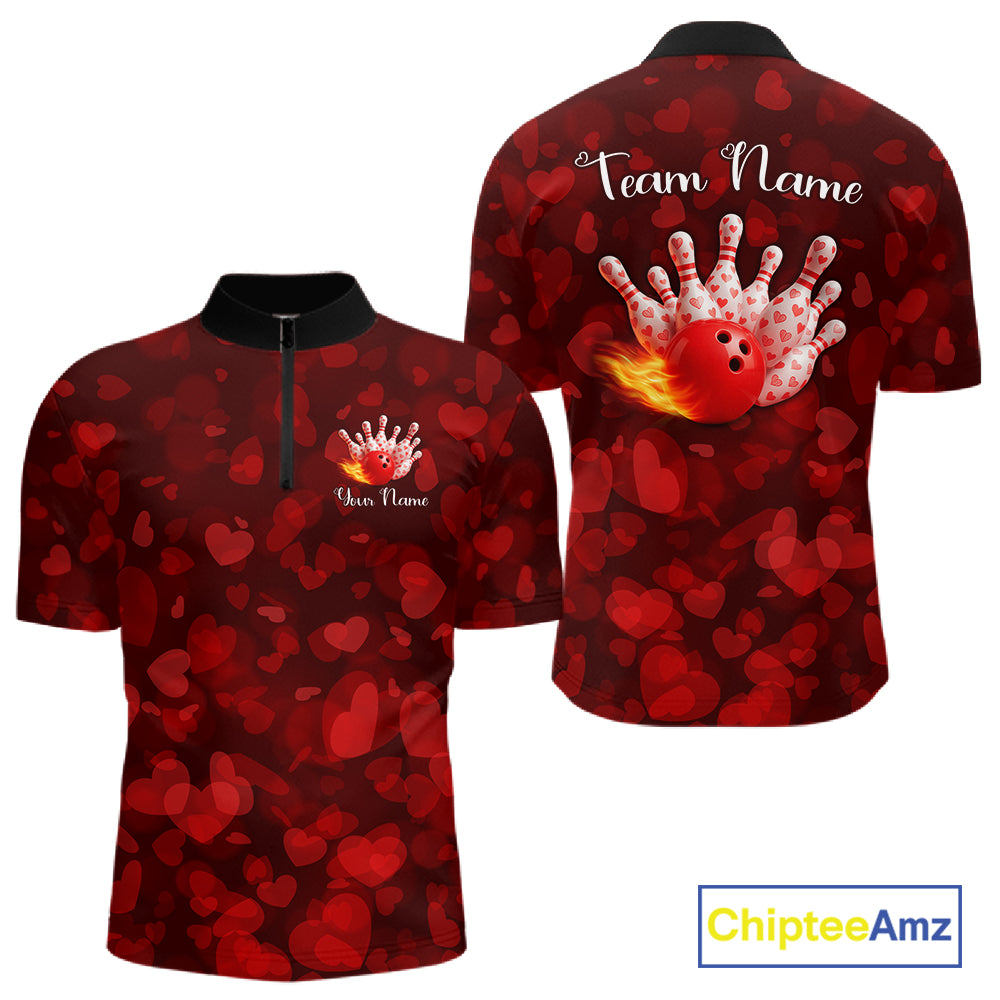Red Hearts pattern Valentine matching bowling shirts for couples Custom Bowling Couple Outfits NQS11251
